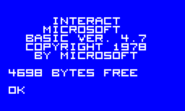 This caused me to spend a couple days writing a simple emulator under OS/X (mostly as an experiment since I'd never tried to write a graphical app on that platform) and got it to the "DEPRESS L TO LOAD TAPE" stage. (I luckily had kept the ROM chips when my mom pitched the computer, I was unable to save it all) Unfortunately things more complicated like Microsoft Basic crashed pretty quickly so there's probably still something a little buggy about my 8080A or other hardware emulation.